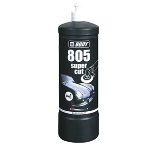 Η γυαλιστική αλοιφή υψηλής ποιότητας HB BODY 805 – super cut είναι κατάλληλη στο να αφαιρεί γραμμές από γυαλόχαρτο P1500 ή και πιο ψιλό. Κατάλληλη επίσης και για αφαίρεση γραμμών που δημιουργήθηκαν στο πλυντήριο αυτοκινήτων όπως και για τη διόρθωση του φαινομένου του ‘ππορτοοκαλιού’ δίνοντας μια έντονη και βαθιά γυαλάδα. Ελέυθερη σιλικόνης, κατάλληλη για όλα τα συστήματα βαφής και εφαρμόζεται πάντοτε με αλοιφαδόρο.