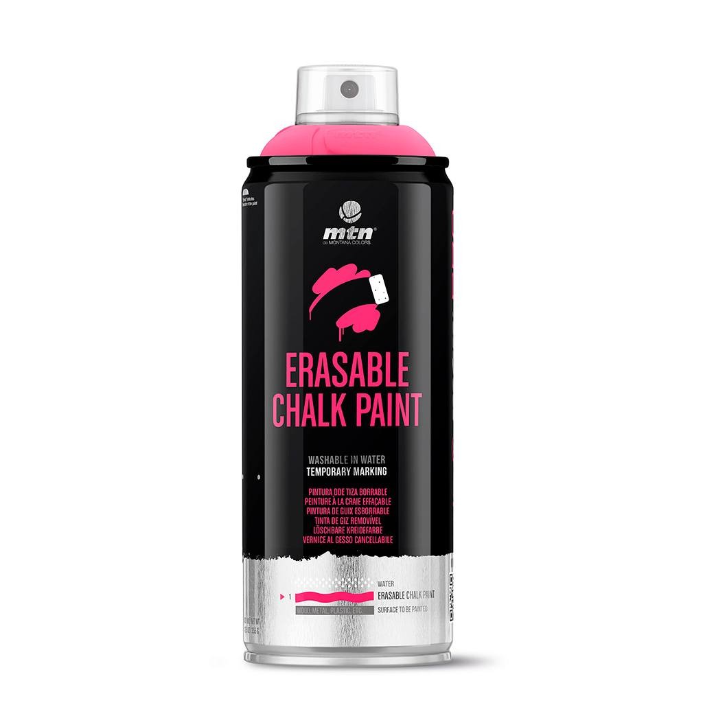 Το MTN PRO Erasable Chalk Paint είναι μια βαφή γρήγορης ξήρανσης με βάση το νερό με υψηλή αδιαφάνεια και ματ φινίρισμα. Αναπτύχθηκε για προσωρινές σημάνσεις σε μη πορώδεις επιφάνειες όπως κατασκευή, αθλητικές εκδηλώσεις, διακόσμηση ταινιών, παιδικά παιχνίδια, προσωρινές διακοσμήσεις και ούτω καθεξής. Ιδανικό για καταστάσεις που απαιτούν βαφή ψεκασμού που μπορεί εύκολα να αφαιρεθεί αργότερα με νερό υπό πίεση. Ανθεκτικό σε επαφή. Δεν καταρρέει. Για να αφαιρέσετε το χρώμα, τρίψτε με ένα υγρό πανί ή εφαρμόστε νερό υπό πίεση.
