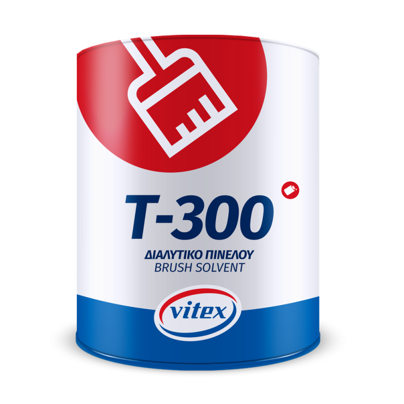 Το Διαλυτικό Πινέλου Τ 300 είναι μίγμα οργανικών διαλυτών, αρωματικών υδρογονανθράκων, άχρωμο, διαυγές, αδιάλυτο στο νερό, ιδανικό για την αραίωση χρωμάτων και υποστρωμάτων διαλύτη που πρόκειται να εφαρμοστούν με πινέλο ή ρολό. Κατάλληλο και για την απολίπανση των μεταλλικών επιφανειών.