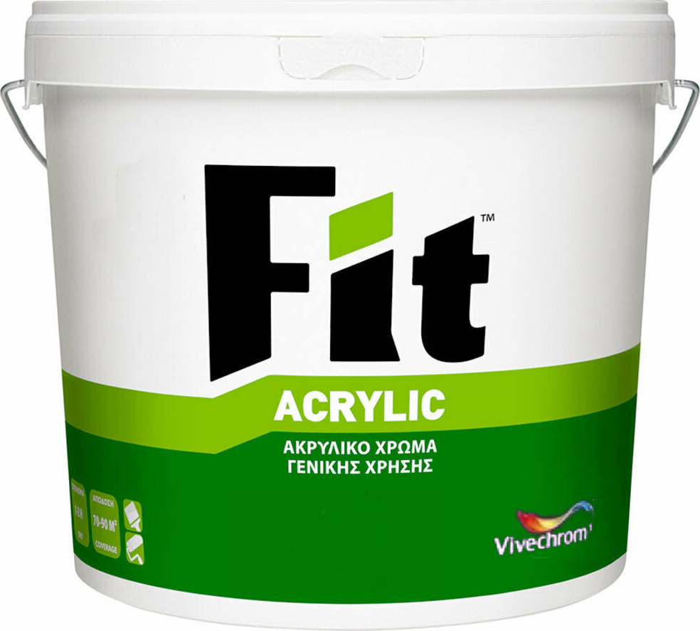 Το FIT ACRYLIC είναι ακρυλικό χρώμα γενικής χρήσης, για εξωτερικές επιφάνειες από σοβά, μπετόν, τούβλα με καλές αντοχές στις καιρικές συνθήκες και την υψηλή αλκαλικότητα. Αποτελεί οικονομική λύση για επιφάνειες που χρειάζονται συχνό βάψιμο και φρεσκάρισμα όπως σχολεία, ξενοδοχεία, μεγάλα δημόσια έργα. Έχει ισχυρή πρόσφυση, καλή καλυπτικότητα και λευκότητα.Έχει καλή καλυπτικότητα και πολύ καλό άπλωμα. Διατίθεται σε λευκό και χρωματίζεται μέσω του συστήματος ΧΡΩΜΟΣΥΝΘΕΣΕΙΣ της Vivechrom σε απεριόριστο αριθμό αποχρώσεων, σε συσκευασίες των 3Lt & 9Lt.