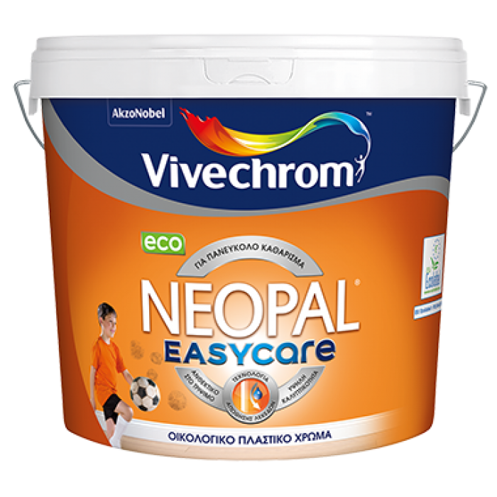 To NEOPAL Easycare Eco οικολογικό πλαστικό χρώμα που χάρη στην καινοτόμο σύνθεσή του απωθεί τους υγρούς λεκέδες, αποτρέποντας τους να εισέρχονται σε βάθος. Αποδεδειγμένα πολύ πιο ανθεκτικό στο τρίψιμο από ένα κοινό πλαστικό χρώμα. Δουλεύεται εύκολα, έχει υψηλή λευκότητα, μεγάλη καλυπτικότητα και διακρίνεται για το θαυμάσιο, ομοιόμορφο άπλωμά του και το βελούδινο φινίρισμά του. Είναι πιστοποιημένο οικολογικό χρώμα και πληροί τα νέα κριτήρια του Οργανισμού Απονομής Οικολογικών Σημάτων της Ε.Ε. Είναι κατάλληλο για σπατουλαριστές επιφάνειες, γυψοσανίδες, σοβά, μπετόν. Δημιουργεί ένα προστατευτικό φιλμ με την υψηλότερη αντοχή στους υδατοδιαλυτούς λεκέδες, όπως χυμός, τσάι, αναψυκτικά, λάσπη, σοκολάτα, κέτσαπ, ώστε το καθάρισμά τους γίνεται παιχνιδάκι. ΚΑΘΑΡΙΣΜΟΣ ΛΕΚΕΔΩΝ: Πλήρης αντοχή στο πλύσιμο επιτυγχάνεται μετά από 20 ημέρες από το βάψιμο. Οι λεκέδες μπορούν να αφαιρεθούν με μαλακό σφουγγάρι και νερό με υγρό σαπούνι και σε χρόνο όχι περισσότερο από 15 λεπτά από τη δημιουργία του λεκέ.