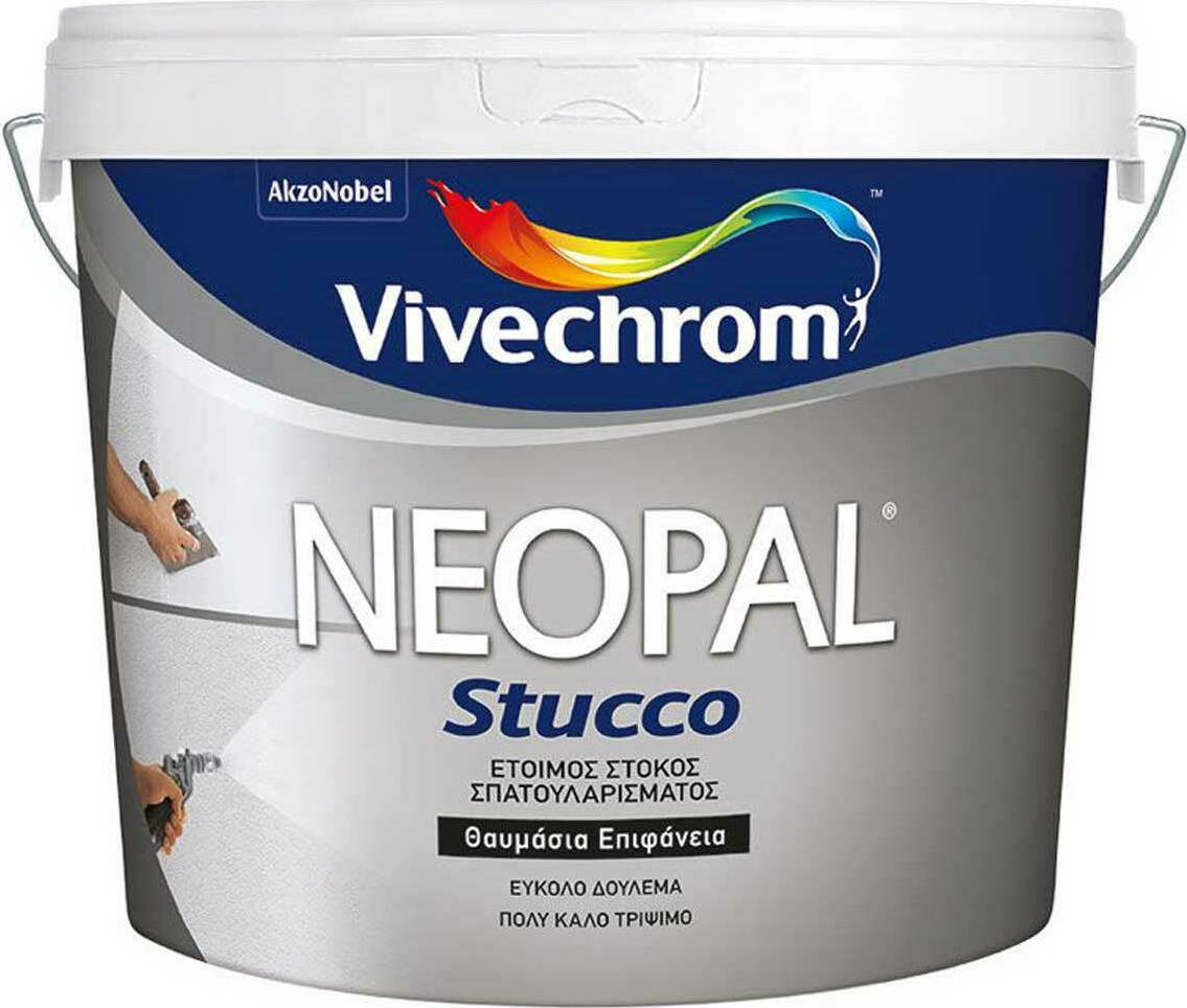 Το NEOPAL STUCCO είναι στόκος σπατουλαρίσματος μεγάλων επιφανειών, έτοιμος προς χρήση σε εσωτερικούς τοίχους από σοβά, γυψοσανίδες ή μπετόν. Έχει πολύ καλά γεμίσματα, δουλεύεται εύκολα και απλώνει θαυμάσια. Στεγνώνει γρήγορα και τρίβεται πολύ εύκολα με το χέρι και ακόμα ευκολότερα με τριβείο, χωρίς πολύ σκόνη, ελαχιστοποιώντας έτσι τα προβλήματα στην αναπνοή και τα μάτια του τεχνίτη. Προσφέρει μία πολύ λεία, ομοιόμορφη και συνεκτική επιφάνεια, έτοιμη να βαφεί με πλαστικά χρώματα ή ριπολίνες.