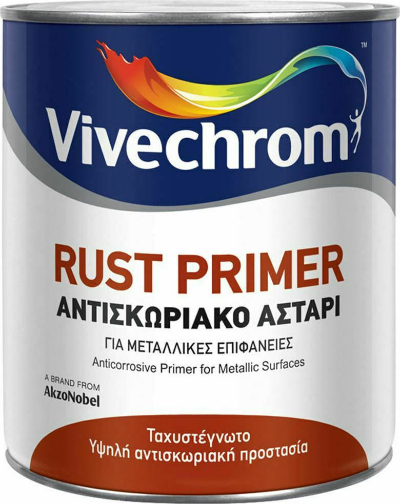 Το RUST PRIMER είναι ταχυστέγνωτο ισχυρότατο αντισκωριακό αστάρι που περιέχει μη τοξικά αντισκωριακά πιγμέντα. Είναι απαραίτητο για την προστασία μεταλλικών επιφανειών όπως αμαξώματα, γεωργικά μηχανήματα, κάγκελα και γενικά σιδηρές κατασκευές. Έχει μεγάλη ελαστικότητα και ισχυρή πρόσφυση. Διατίθεται σε γκρι και καφέ στις συσκευασίες των 750ml, 2,5lt & 5lt.