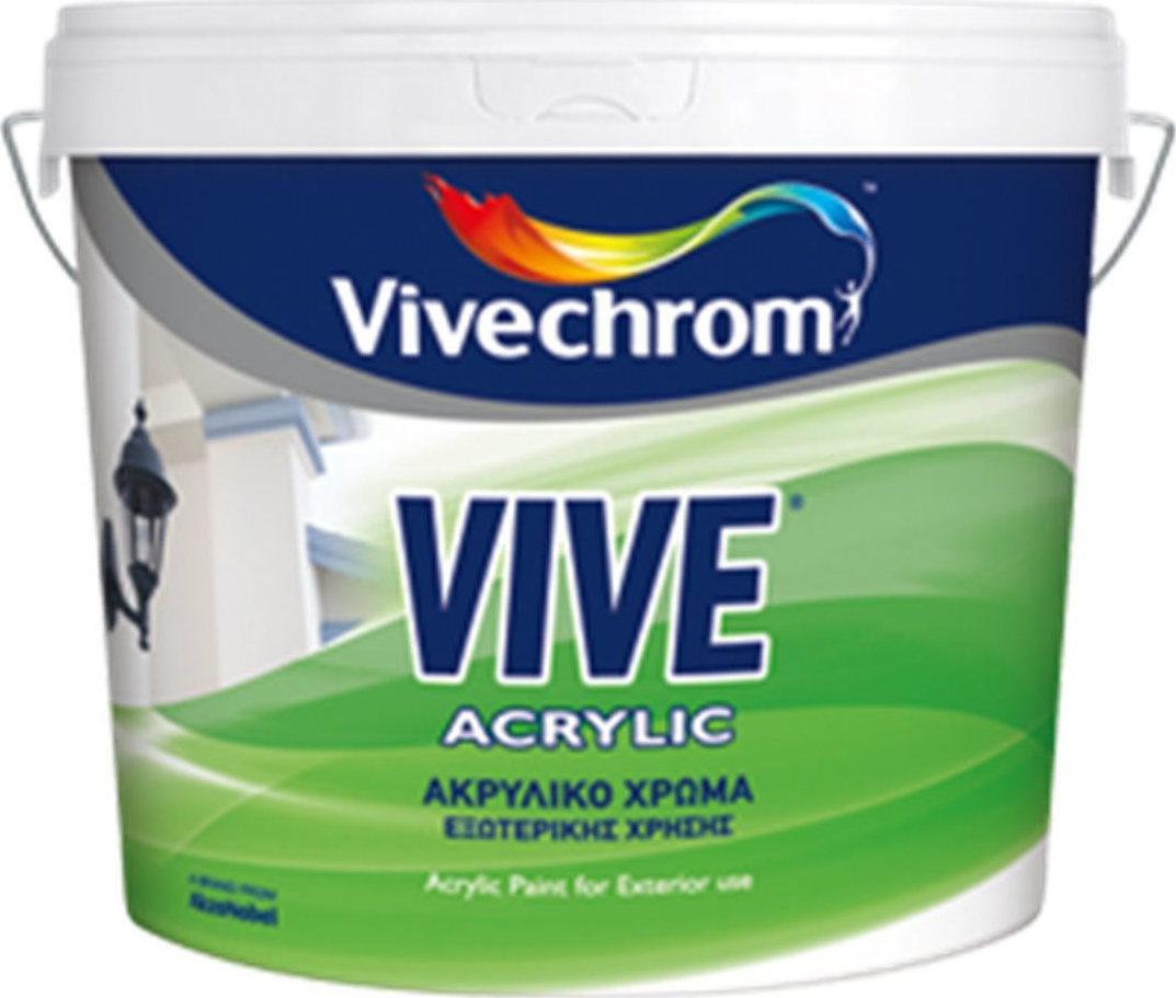 Το VIVE ACRYLIC είναι ακρυλικό χρώμα εξωτερικής χρήσης που αποτελεί την οικονομική και αξιόπιστη λύση για τους επαγγελματίες σε επιφάνειες που χρειάζονται συχνή επαναβαφή και φρεσκάρισμα όπως σχολεία, ξενοδοχεία, μεγάλα δημόσια έργα καθώς και επιφάνειες που λερώνονται διαρκώς από συνθήματα, graffiti κ.λ.π. Δουλεύεται εύκολα, στεγνώνει γρήγορα και έχει μεγάλη καλυπτικότητα και ισχυρή πρόσφυση.